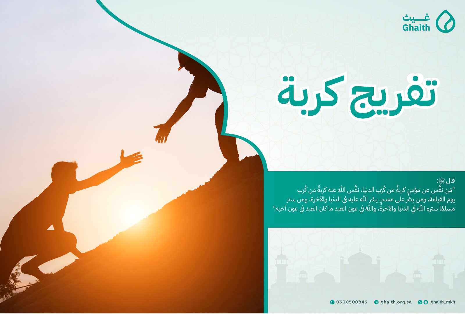 سقيا غيث - السلة الغذائية - تفريج كربة - كفالة أسرة فقيرة - كفالة أرملة - كفالة مطلقة - إعانة زواج - تدريب وتأهيل - دعم عام.