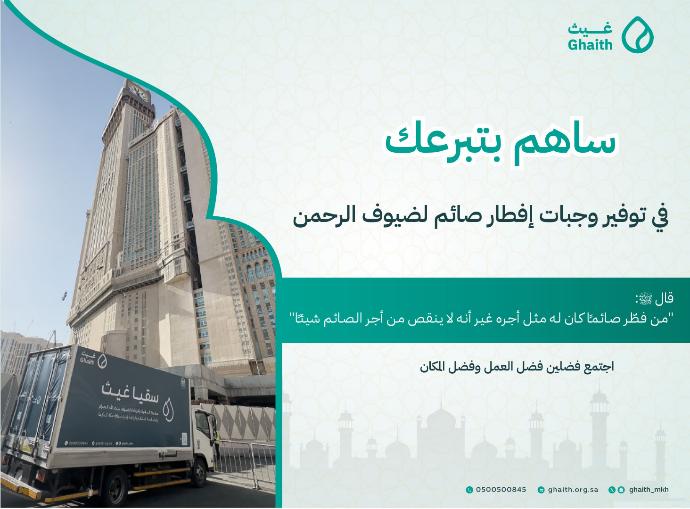 مشروع إفطار صائم في الحرم المكي مشروع يحيي سنة نبوية عظيمة ويعكس جمال التكافل والتراحم بين المسلمين وويسعى هذا المشروع الى تقديم وجبة إفطار صائم يويما خلال شهر رمضان المبارك.